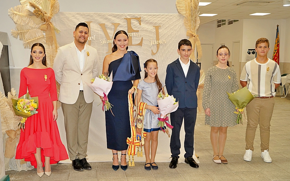 Presidiren l'acte els presidents Javier Pérez, junt a Jonàs Alcoy, infantil, les respectives Falleres Majors, senyoreta Alba Ramón i la chiqueta Valentina Puchades.